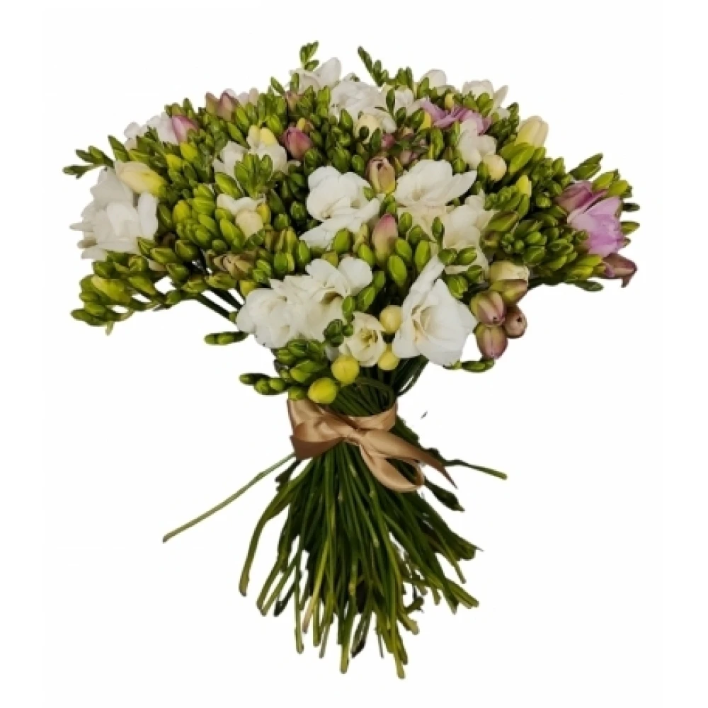 100 jednodruhových vícebarevných frézií ANNELIES v kytici