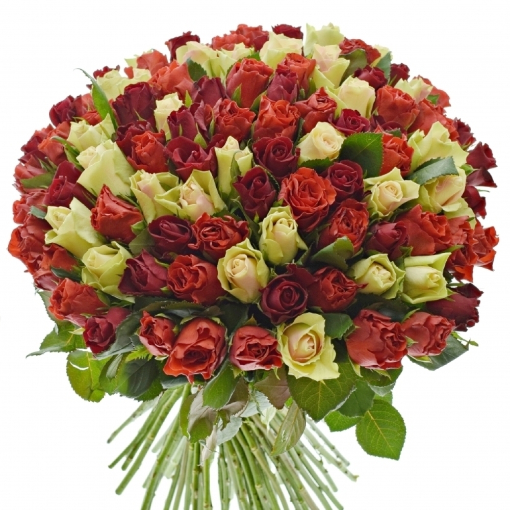 100 jednokvětých vícebarevných 50 cm růží RED RHODA jako 100 důkazů vaší lásky, 100 poděkování, 100 vyjádření úcty a respektu. 100 nádherných vzpomínek na výjimečnou chvíli, kdy jste věnovali nejkrásnější kytici v životě.